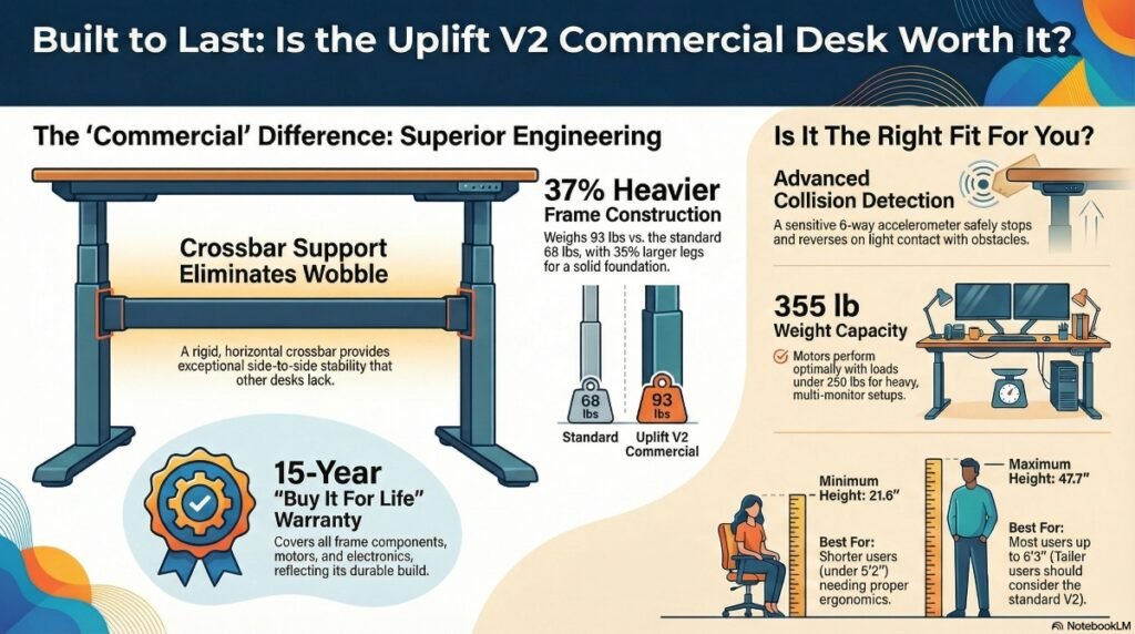 This pricing positions the Commercial about $200 above the standard V2 and significantly more expensive than budget standing desks from manufacturers you’ve probably never heard of. So when does this premium actually make sense?